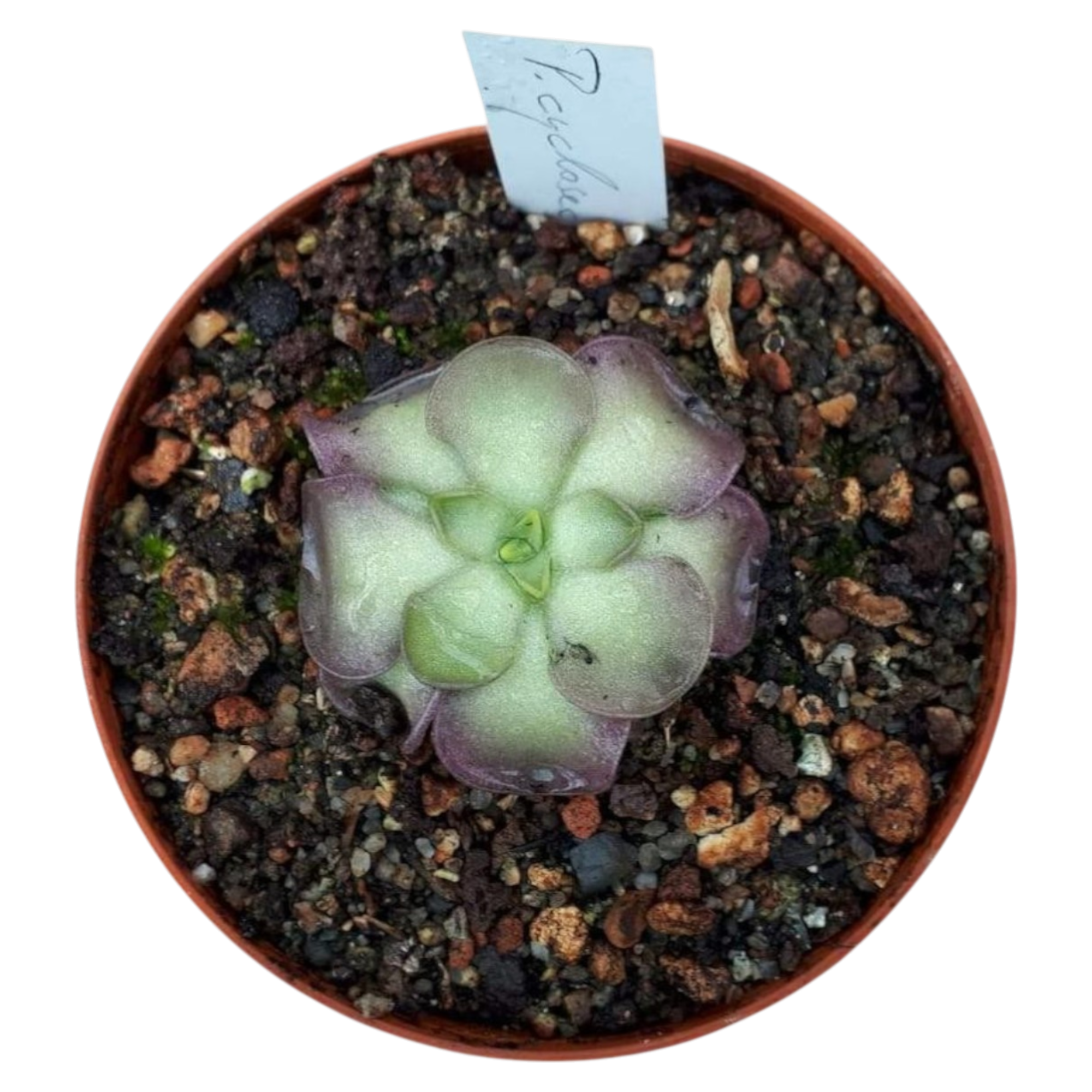 Pinguicula cyclosecta is considered an easy-care Mexican butterwort species that colors its leaves a deep purple with sufficient light exposure. The shade of the plants varies with changing light conditions throughout the year, making Pinguicula cyclosecta one of the most exciting butterworts in cultivation. During the winter months, the plant retreats into a rosette. Occasionally, if grown too warm under additional light, the plants may remain dormant for several years. Cultivation in a cool house is recommended, but not strictly necessary! You will receive one plant!